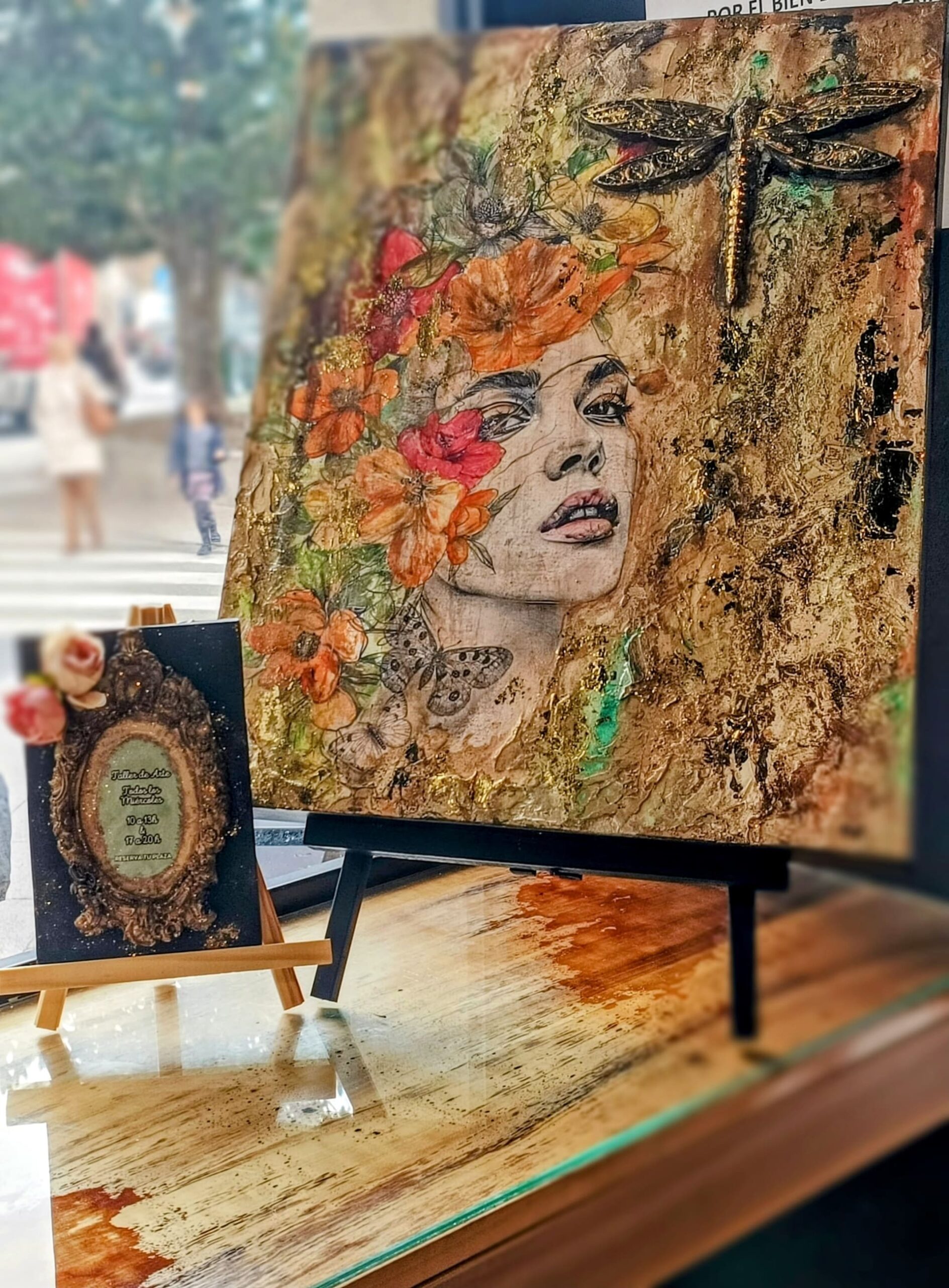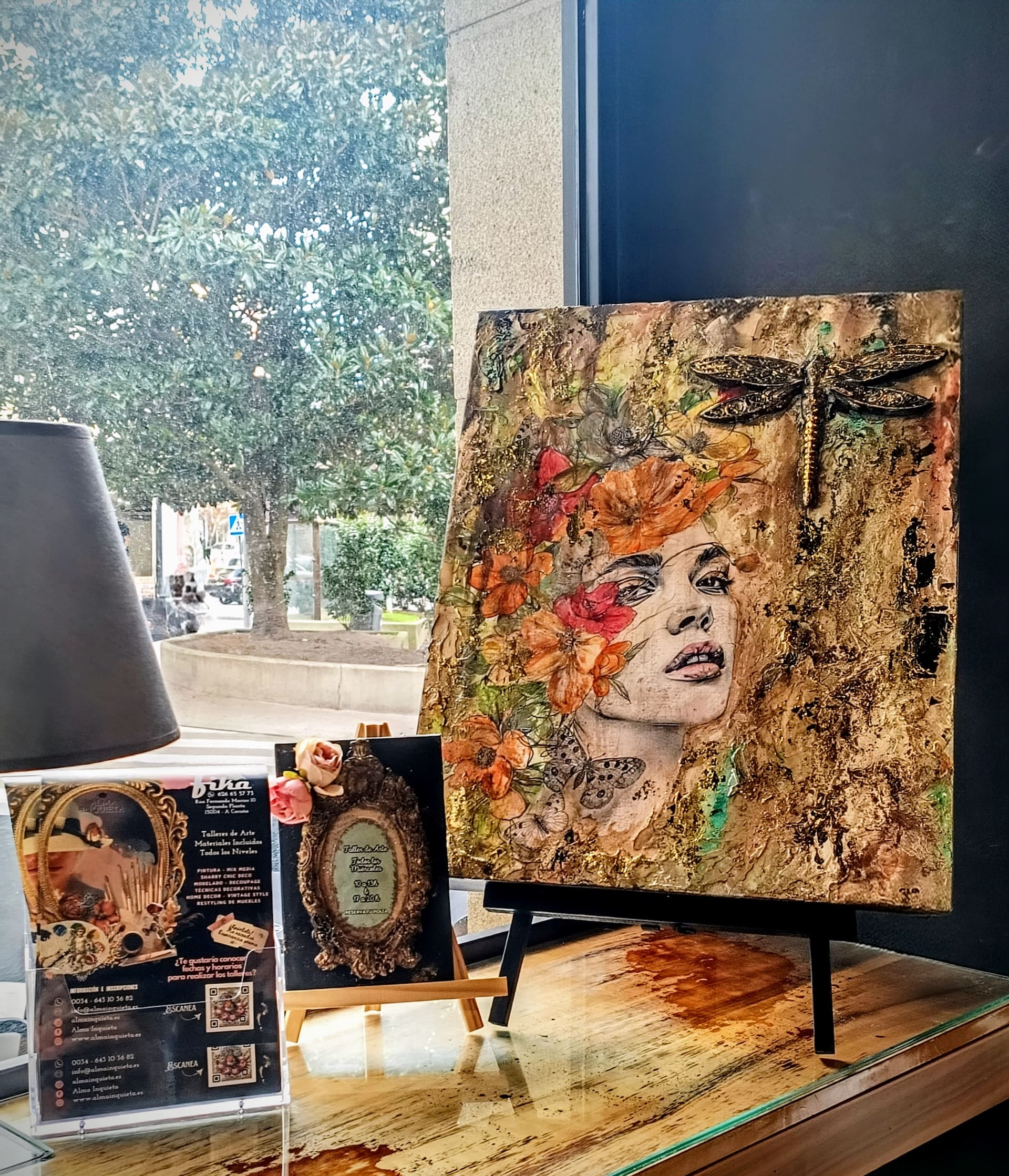 🤗 En el Taller exploraremos cómo transferir una imagen, trataremos cómo integrar los diferentes materiales de la composición, aprenderemos a realizar blending con acrílicos, aplicaremos texturas con pastas, incorporaremos elementos ornamentales y utilizaremos la técnica de dorado a la hoja.